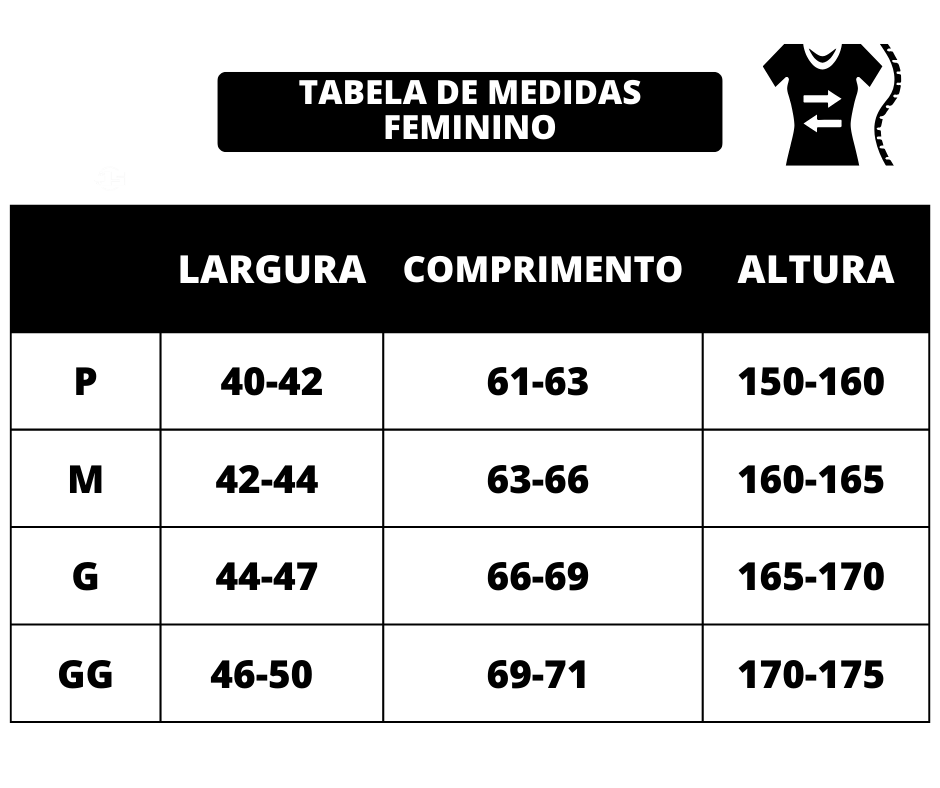 OBS: As medidas podem sofrer uma variação de 1 a 3 cm para mais ou menos.